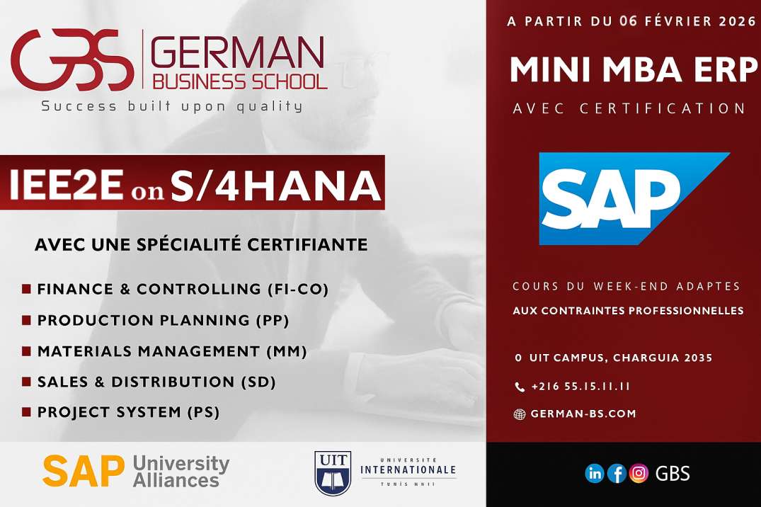 The German Business School offers a Mini-MBA in ERP (Enterprise Resource Planning), including SAP certification. This comprehensive program on business process management implementation runs for one month, with classes held on Fridays and Saturdays, starting on February 6, 2026.